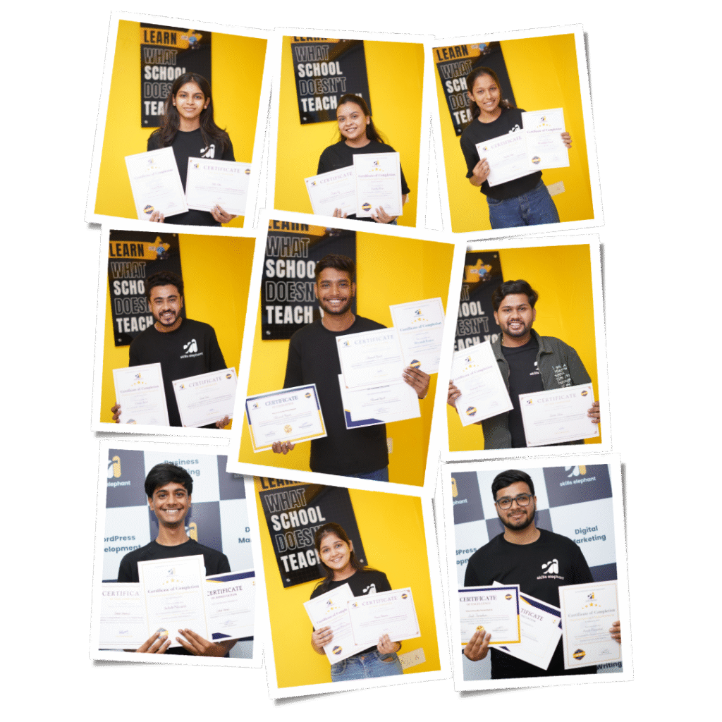 At Skillselephant, we’re proud to train learners from across the heart of India including Madhya Pradesh, Bihar, Chhattisgarh, Maharashtra Gujarat & More .Whether you’re from a bustling town or a quieter city, our practical digital marketing program is helping students everywhere start strong careers.